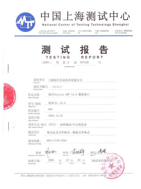 弥行Neptune DNC V2.0软件著作权登记证书及测试报告